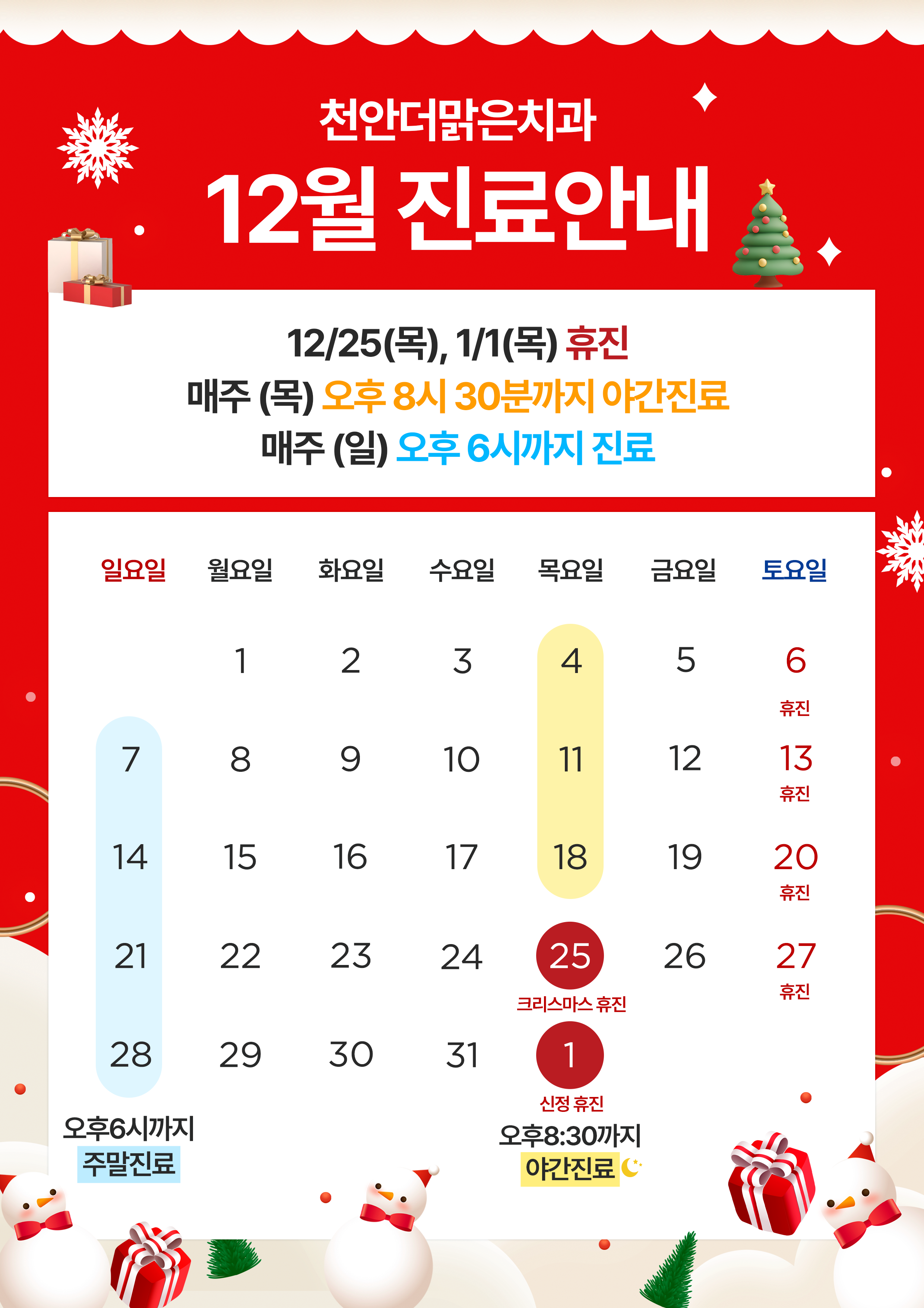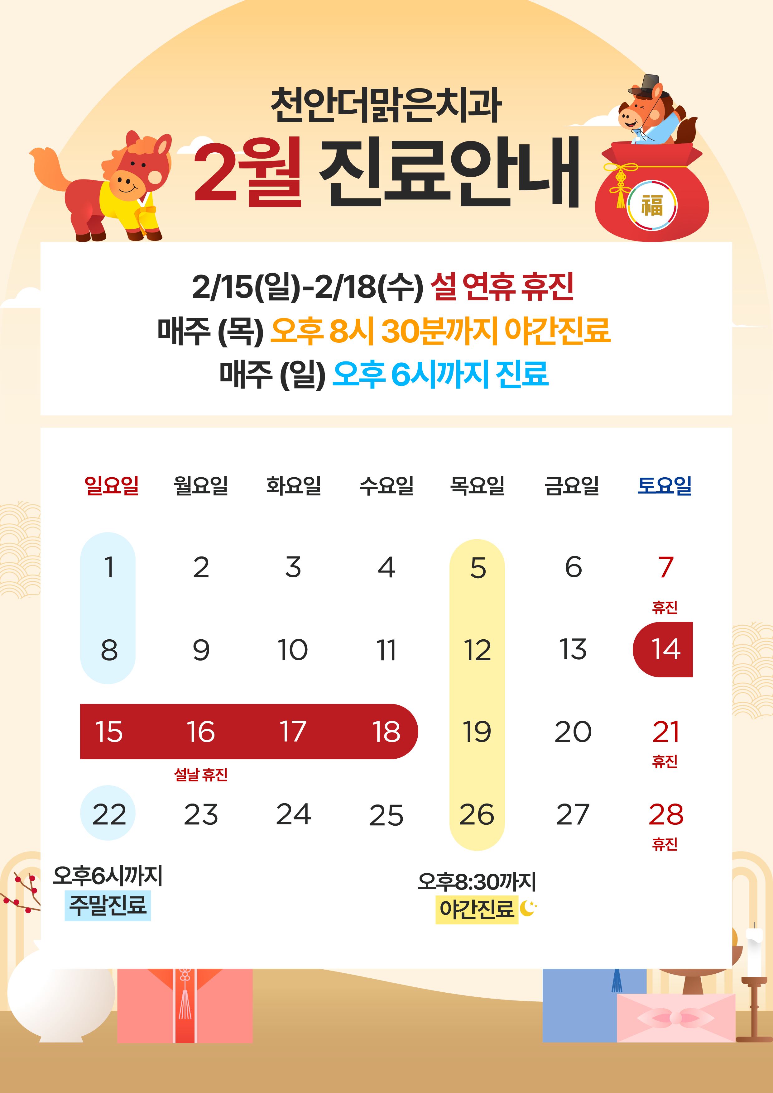 화, 목 AM 09:30 ~ PM 20:30 (야간진료)